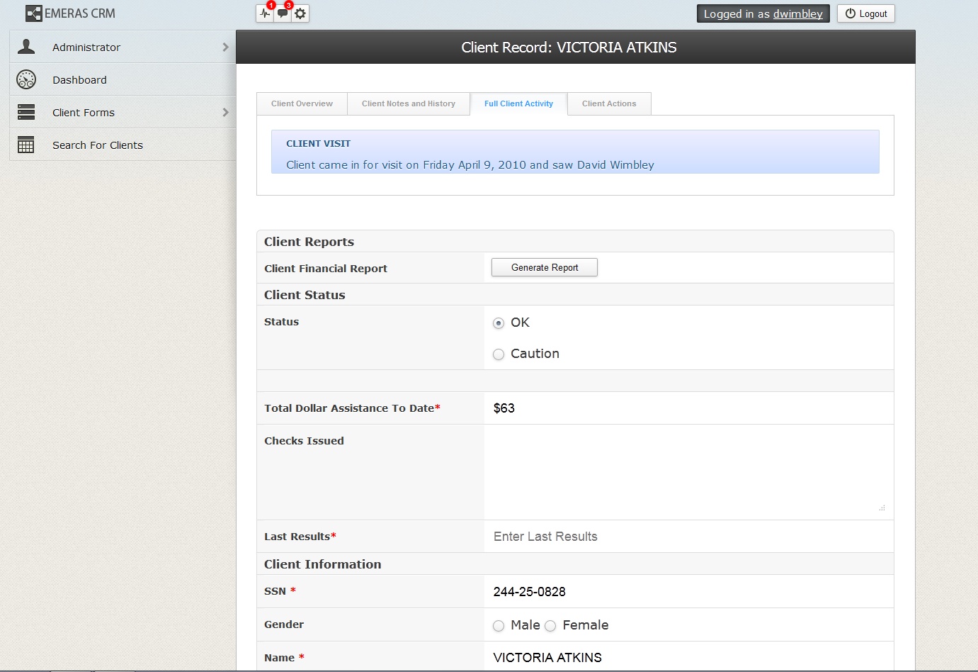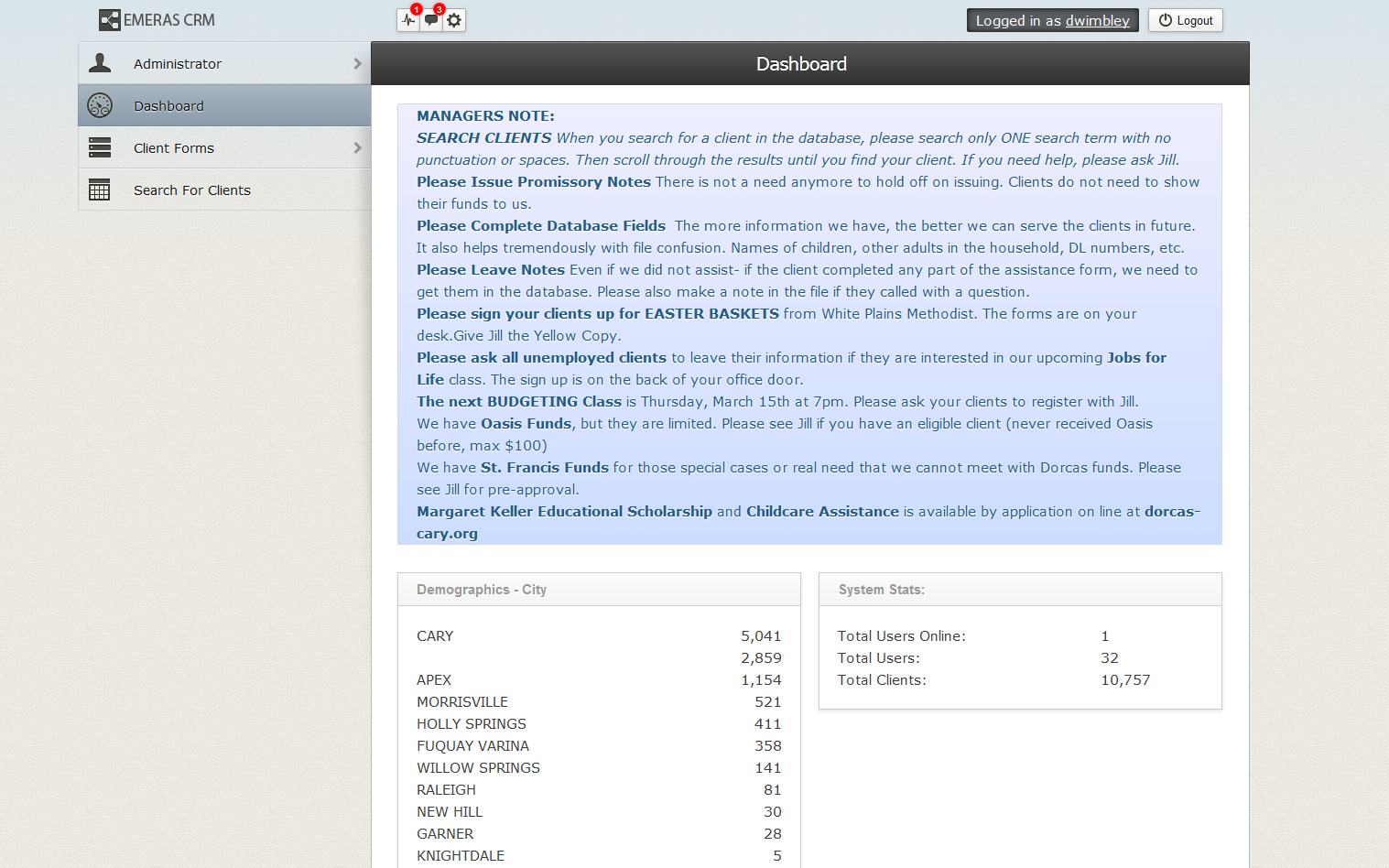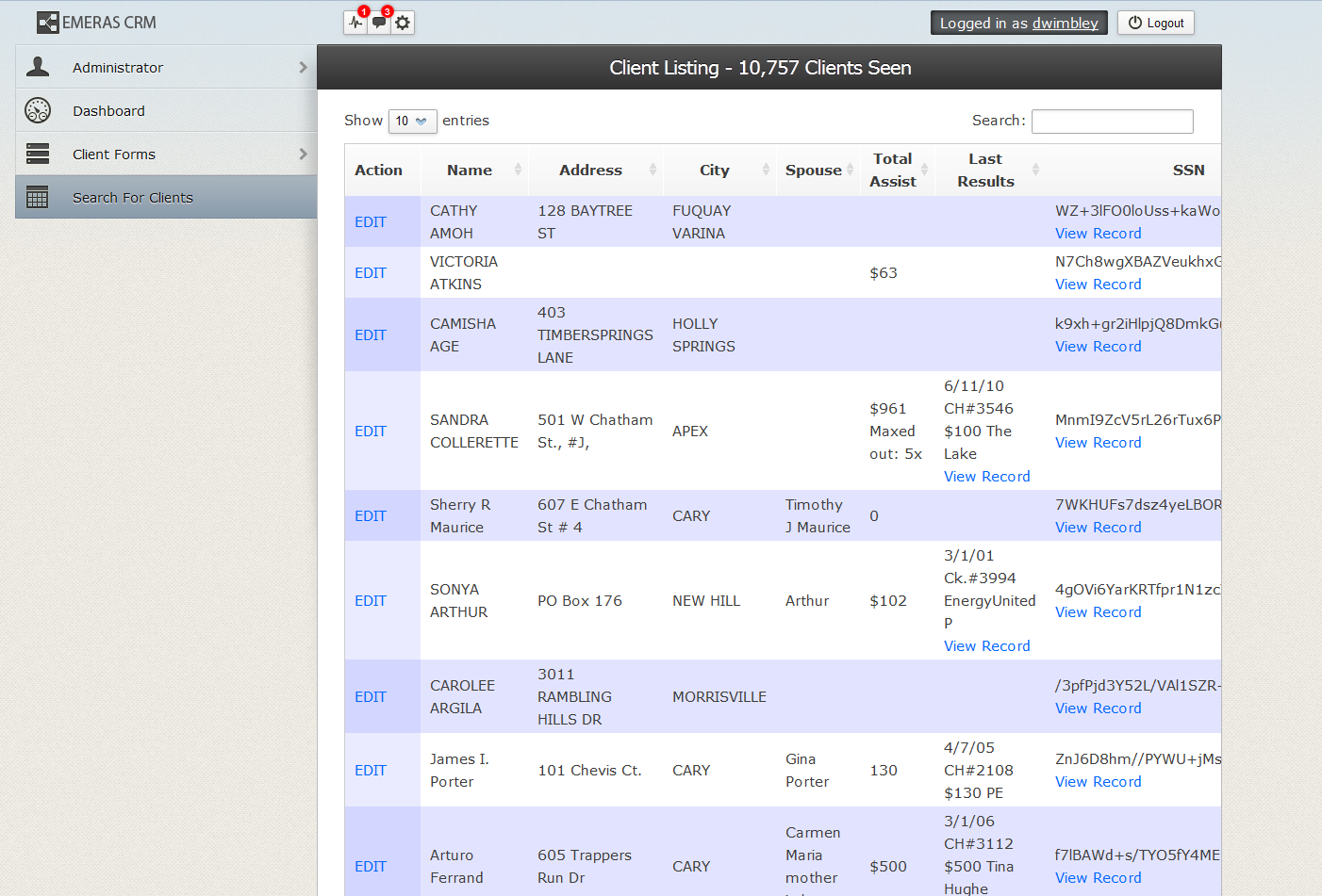 Created custom web based CRM for financial outreach arm of organization. System tracked client information, generated financial reports, categorized clients based on benefit requests using color coded system.